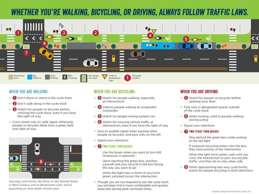 Non-profit Bike Austin has also launched an awareness campaign about the track. You can learn more about it here, and see a diagram of the cycle track below.