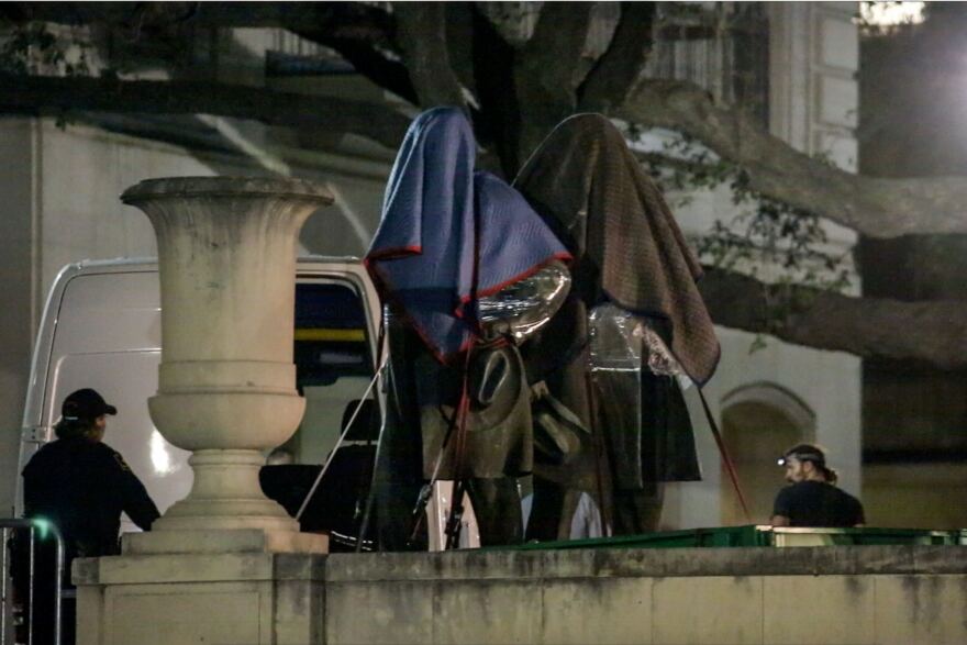Crews got to work late Sunday removing statues depicting Robert E. Lee, Albert Sidney Johnston, John Reagan and James Stephen Hogg from the university's Main Mall.