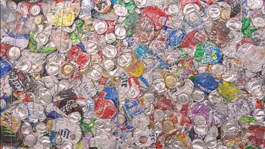 About 15 percent of the stuff tossed in blue bins ends up in a landfill. The rest of the stuff is sold, then sometimes resold. It can end up down the road or overseas. As for our can, it has one more stop here in Austin.