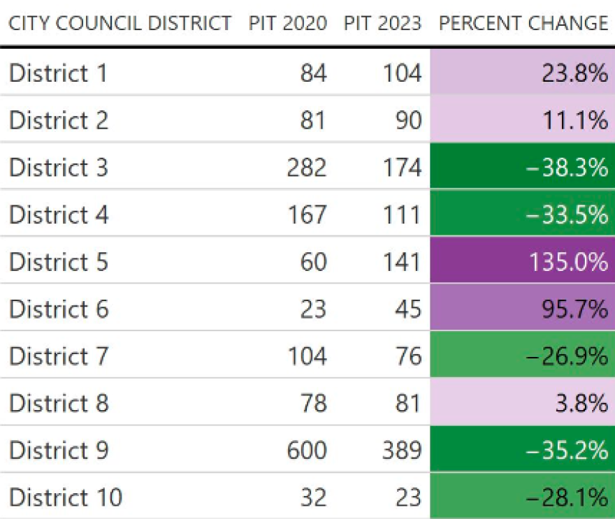 That’s likely a side effect of the city’s reinstatement of bans on camping and sleeping outside in 2021. The survey showed more people moving away from Central Austin, where the bans are more strictly enforced.