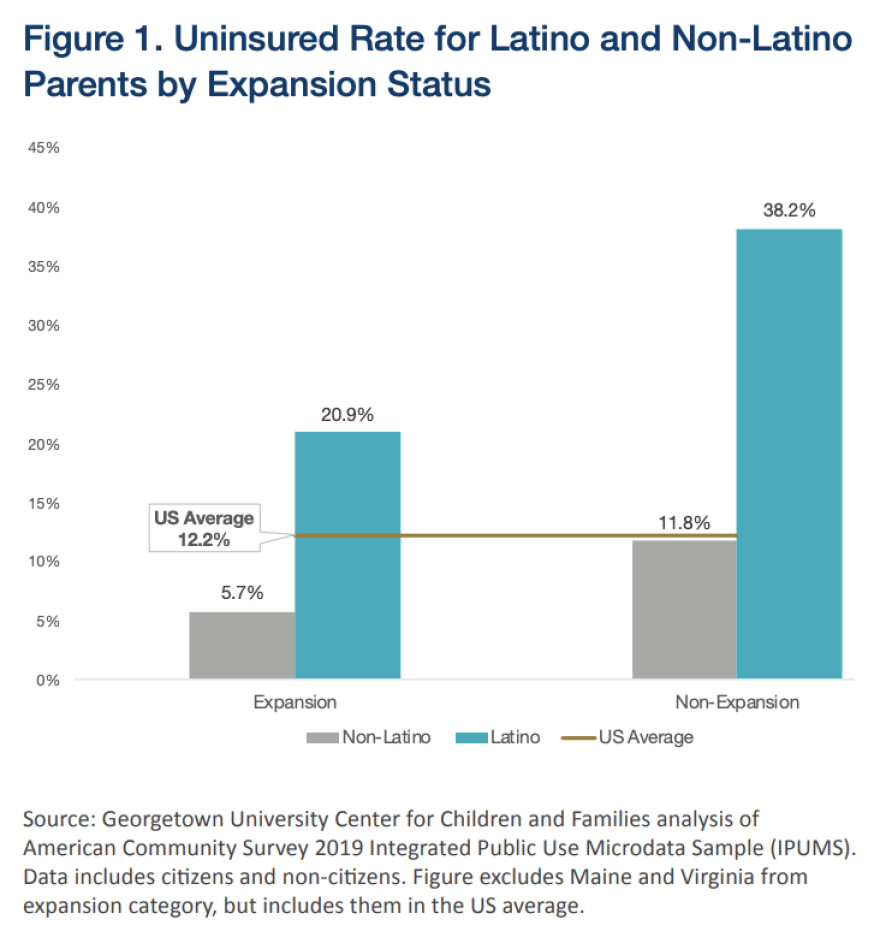 Latino parents in states that have not expanded Medicaid to more low-income people are more likely to be uninsured than those in states that have expanded coverage, according to a new report from the Georgetown University Center for Children and Families and the nonprofit group UnidosUS.